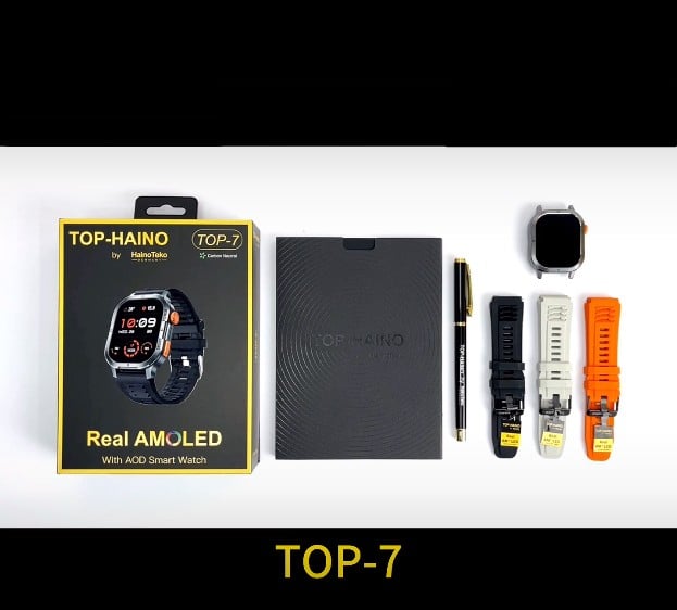 Top-7 ساعة ذكية مع شاشة AMOLED كبيرة، يمكنك إقتران هذه الساعة الذكية مع أجهزة Android وiOS، شاشة عرض كاملة دائمًا ستوفر لك أفضل تجربة للساعة الذكية Top-7 ساعة ذكية مع وجوه متعددة مدمجة يمكن للمستخدمين تخصيص ساعتهم وجهًا لأسلوبهم أو لاحتياجاتهم الإشعارات الذكية: تتيح لك هذه الميزة الحصول على تنبيهات حول المكالمات الواردة والرسائل والإشعارات من التطبيقات الموجودة على Smart Watch Bluetooth الخاصة بك: لا يمكنك فقط تلقي إشعارات المكالمات على ساعتك الذكية من خلال ميزة الاتصال ولكن يمكنك أيضًا حضورها مباشرة من خلال واجهة الساعة عبر مكبر صوت مدمج وميكروفون.